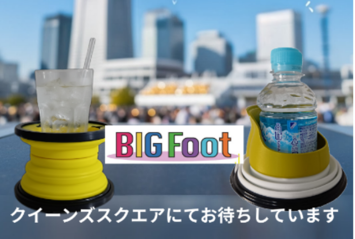 かながわなでしこブランドブースでは、BIG Foot(ビッグフット)カップホルダーを展示販売します。 BIG Footは、転倒を防いで飲み物をしっかりホールドする、安定感のあるカップホルダーです。様々なカラーを取り揃えており、室内はもちろん、アウトドアやキャンプにも最適です。