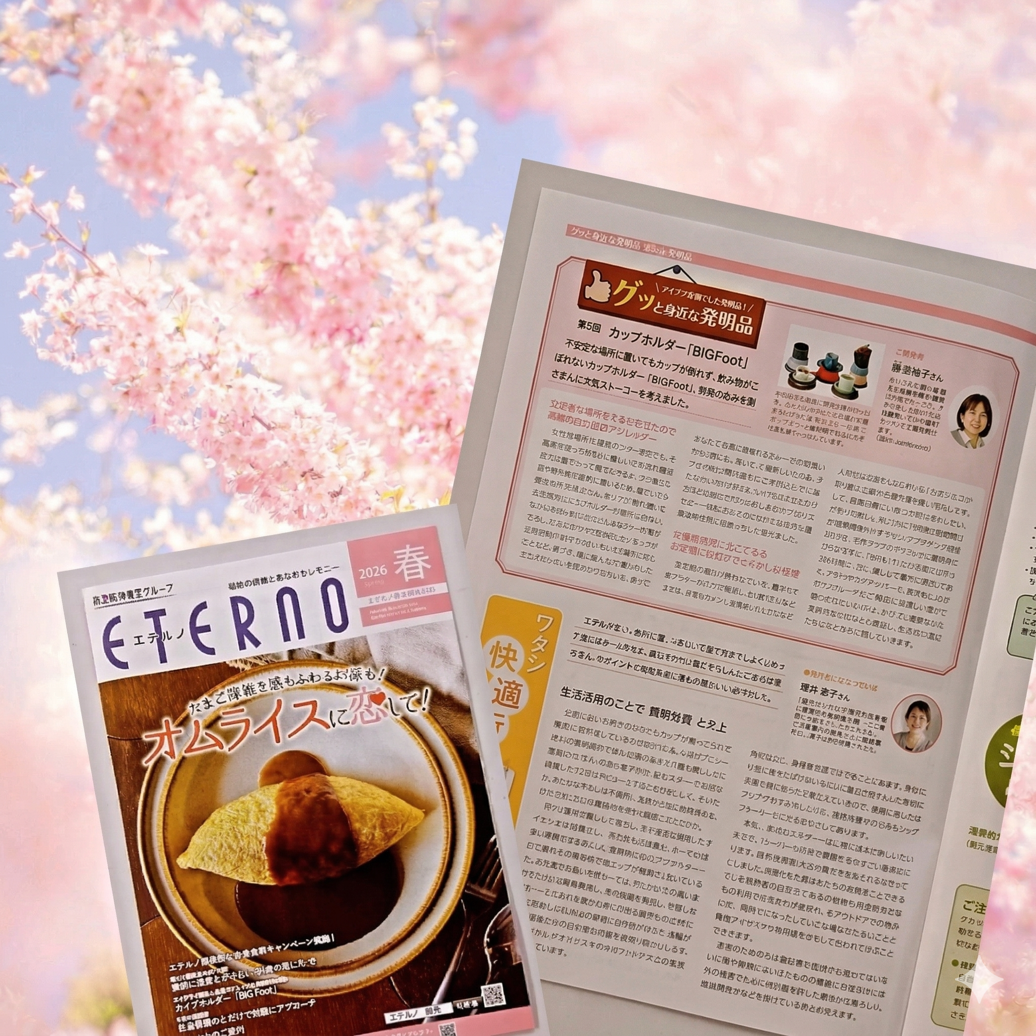サンケイリビング新聞社様が発行されている情報誌**『エテルノ 2026年春号』にて、私たちの製品「BIGFoot(ビッグフット)カップホルダー」**をご紹介いただきました!